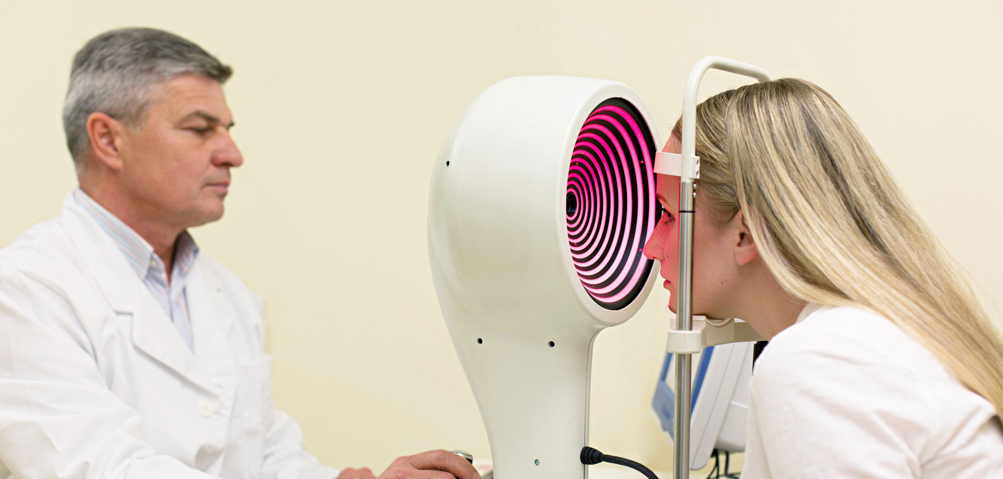 • You will be seated facing a large bowl with lighted circles inside it. The chin and forehead rests, keep your head secure to get the clearest images.